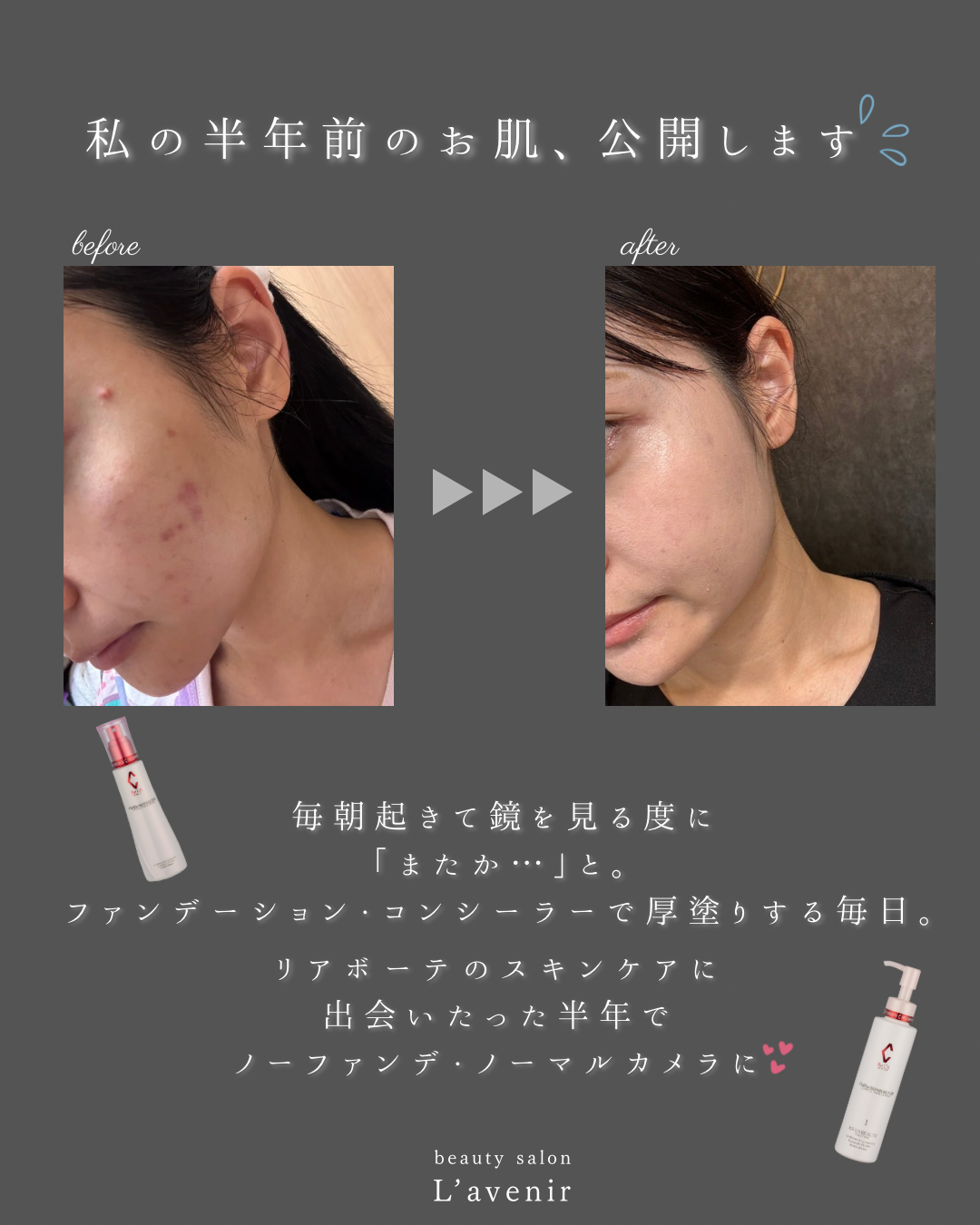 半年後には“ノーファンデ・ノーカメラ加工”のお肌に🤍